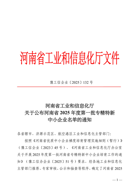 建材院獲批“河南省專精特新中小企業(yè)”認定 2025-07-03